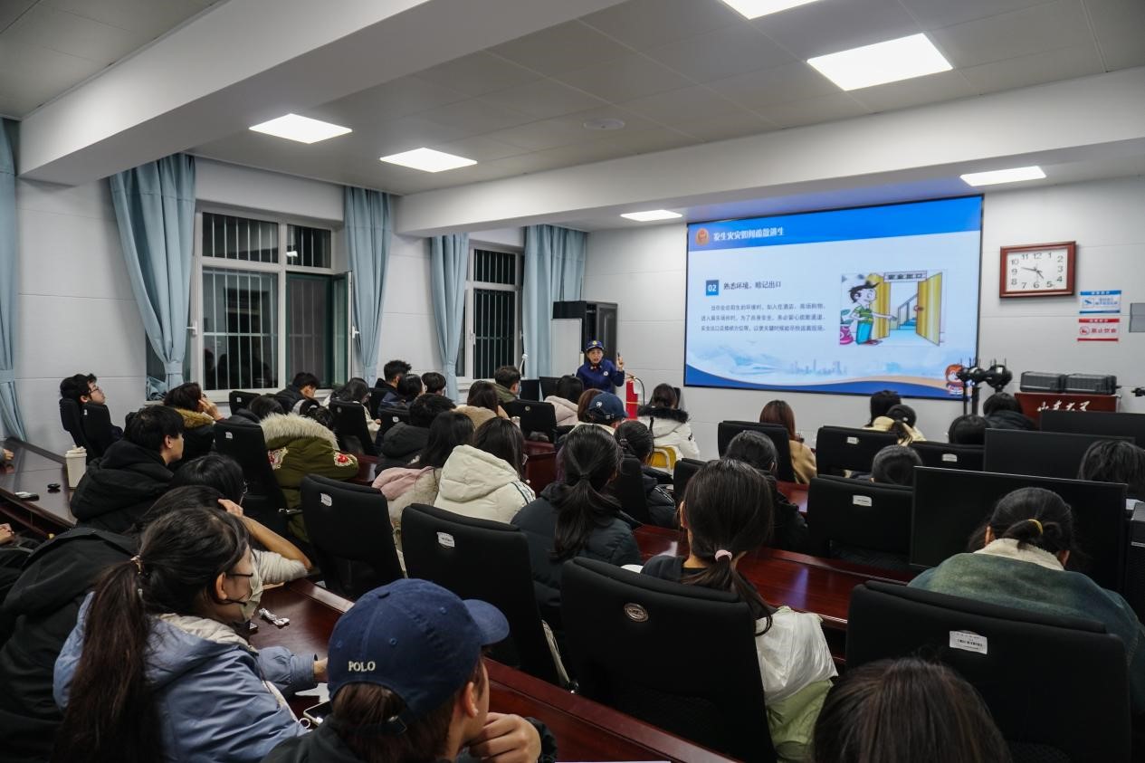 为进一步加强校园安全教育,切实增强学生消防安全意识与应急自救能力,12月10日下午,TapTap在文学楼102教室举办消防安全培训及火灾疏散演练活动。本次活动特邀威海市高区消防救援大队刘参谋担任主讲,学院2025级全体本科生及研究生寝室长参与。