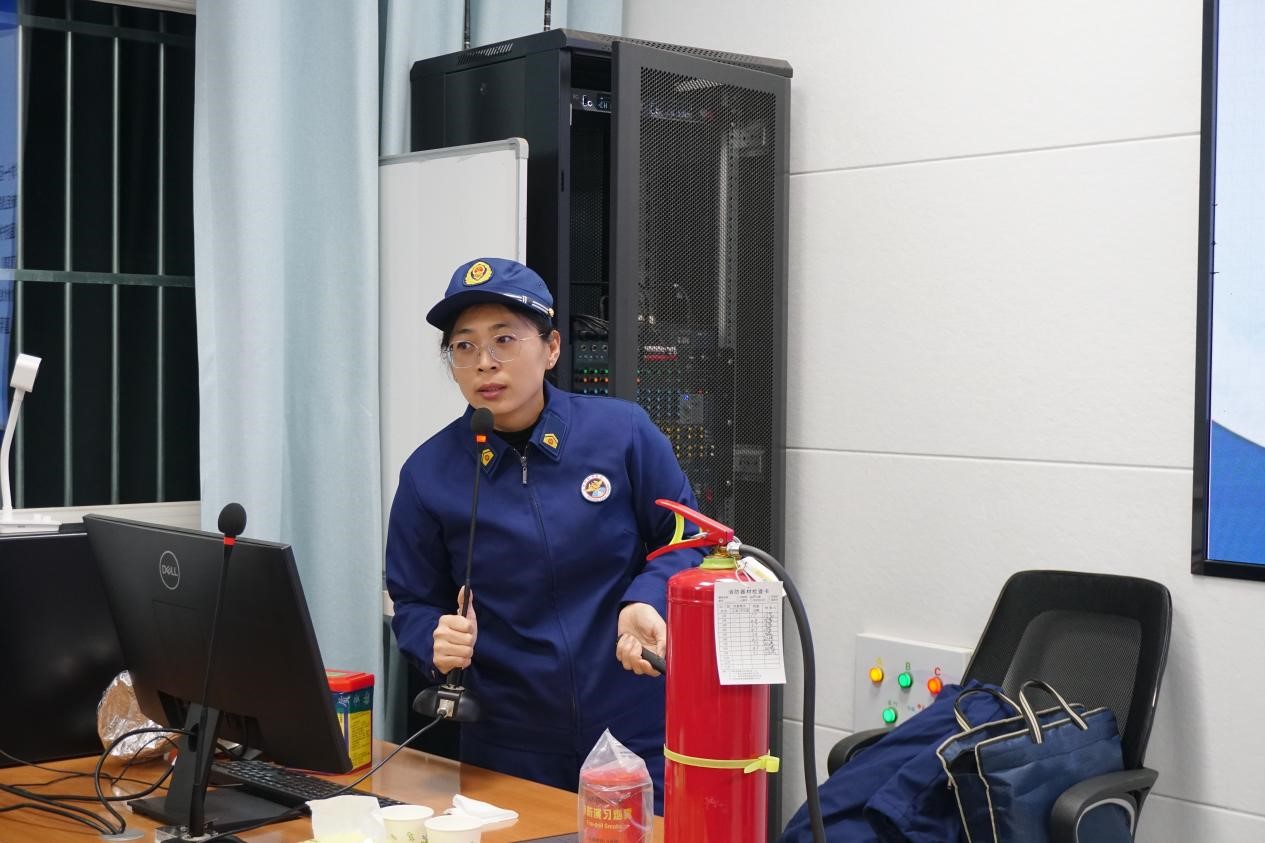 培训会上,刘参谋以近年来高校典型火灾案例为切入点,深入剖析了消防设施不完善、违规使用大功率电器、安全管理不到位等问题,系统讲解了校园火灾预防要点,重点强调电气火灾防范,对线路故障、违规用电等常见隐患进行了细致分析,并结合实验室、宿舍等场所特点提出专业建议。在实操教学环节,刘参谋详细介绍了火灾分类与灭火器类型,现场演示了“提、拔、握、压”四步操作法,指导学生正确辨识消防标志、掌握防烟面罩佩戴技巧及火场逃生原则。