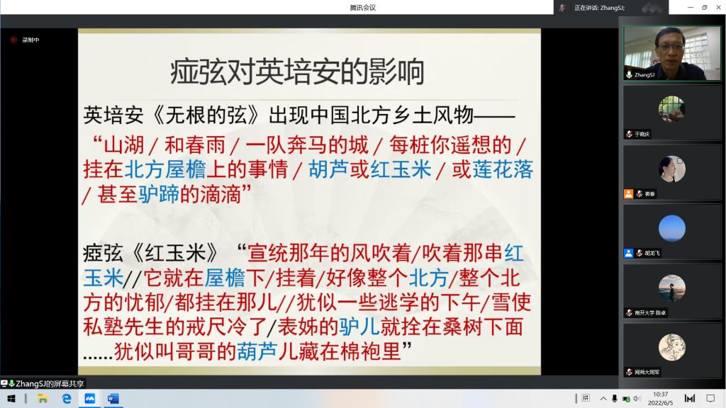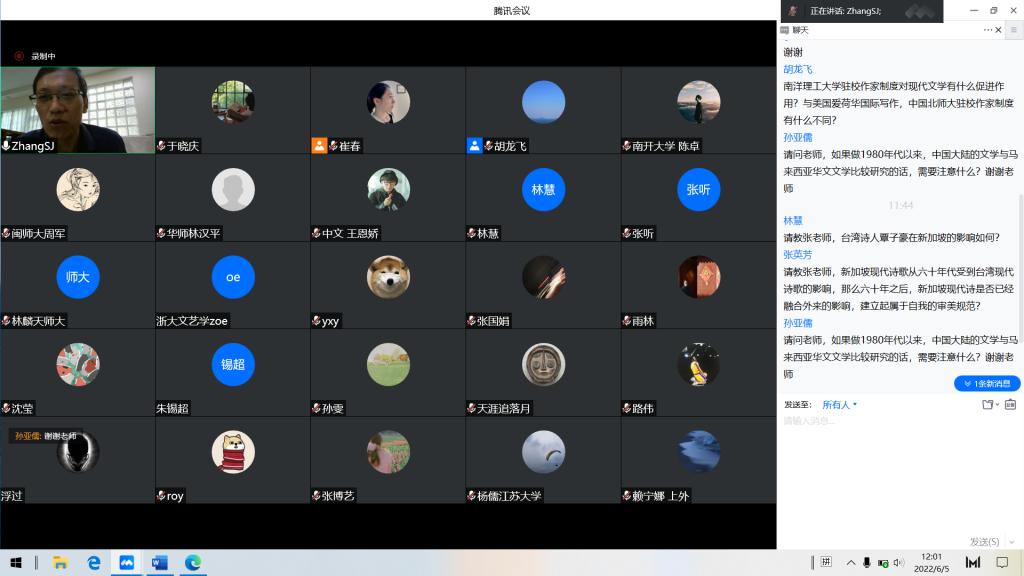 6月5日上午,南洋理工大学人文学院张松建副教授应邀做客TapTapTapTap点点,主讲题为“跨域现代主义:台湾现代诗对新加坡的影响”的学术报告。TapTap崔春副教授主持报告会,来自浙江大学、南开大学和山东大学一校三地等高校的近百名师生通过腾讯会议共同聆听此次报告。