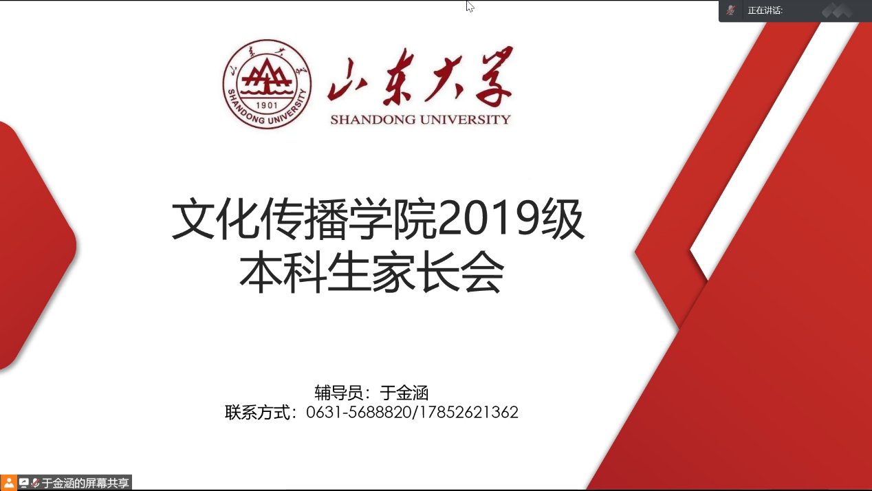 本站讯 11月24日上午,TapTap2019级本科生家长会于腾讯会议线上召开,2019级辅导员于金涵主持会议,2019级全体学生家长参加本次会议。
